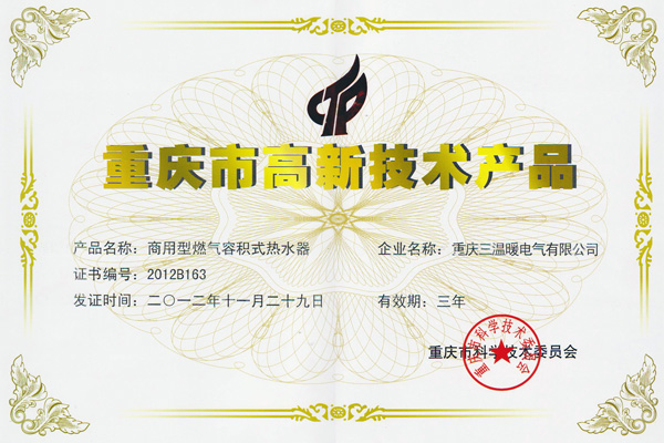 重慶三溫暖電氣有限公司創(chuàng)建于1995年,是專業從事中央熱水系統和廚衛(wèi)電器產品的集研發(fā)、制造、銷售為一體的現代化企業,主營:燃氣容積式熱水器、商用熱水器的專業制造商,獲得了該行業國際標準--澳大利亞“AGA”認證并遠銷澳大利亞、新西蘭、印度、泰國、菲律賓、哥倫比亞、馬來西亞等國家和地區。